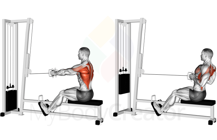 Seated cable rows work the middle of your back, including your rhomboids and traps, while also engaging your lats.