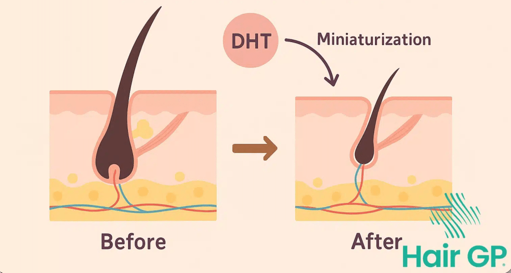 In men, elevated DHT plays a major role in androgenetic hair loss. In women, shifts in estrogen, thyroid issues and PCOS can all affect density.